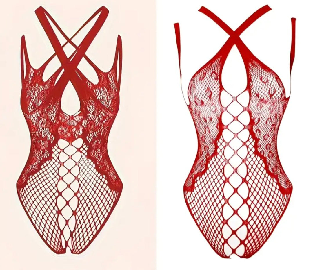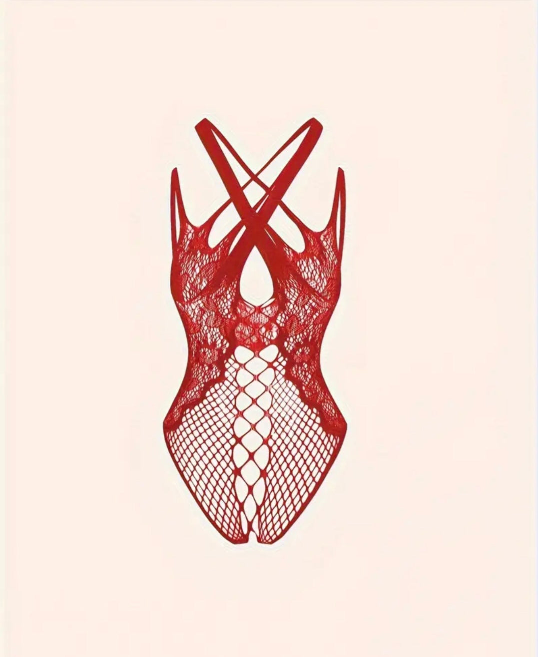 Crimson Kiss – Çapraz Askılı Dantel & File Bodysuit