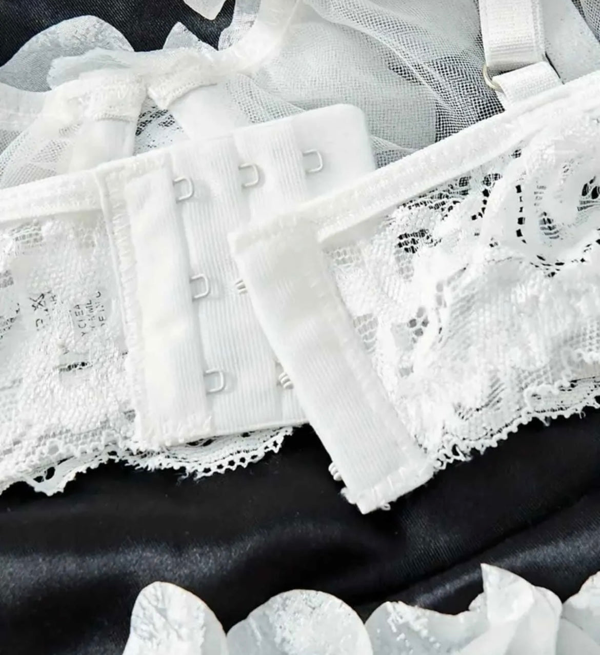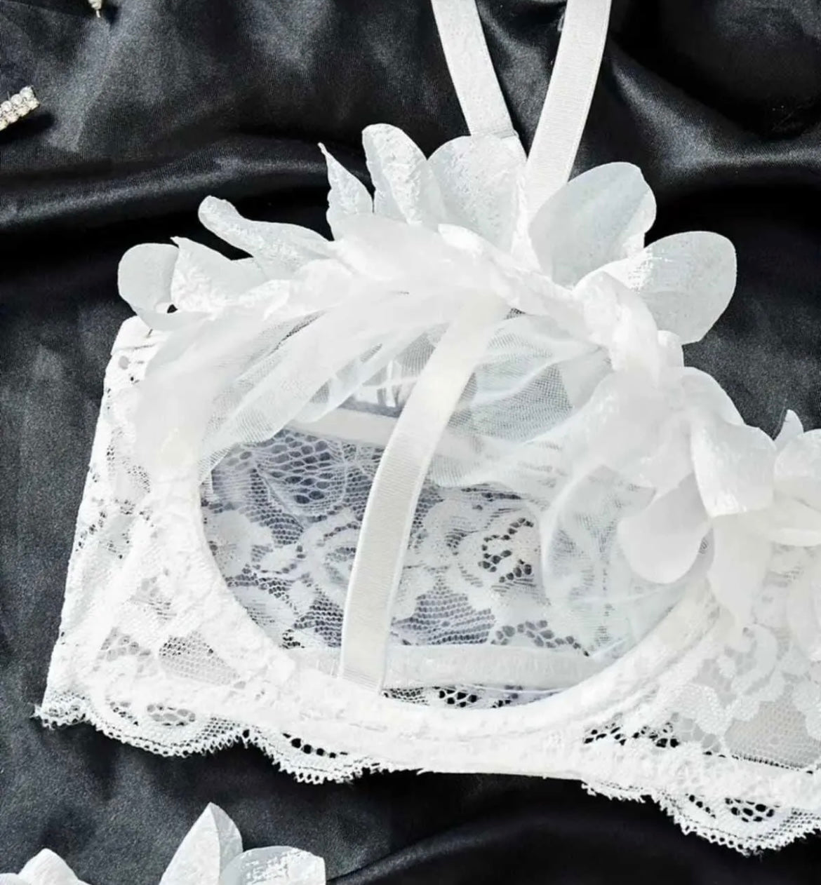 Eternal Bloom |Fantezi Gelin İç Çamaşırı Seti – 4 Parça Dantel & Tül