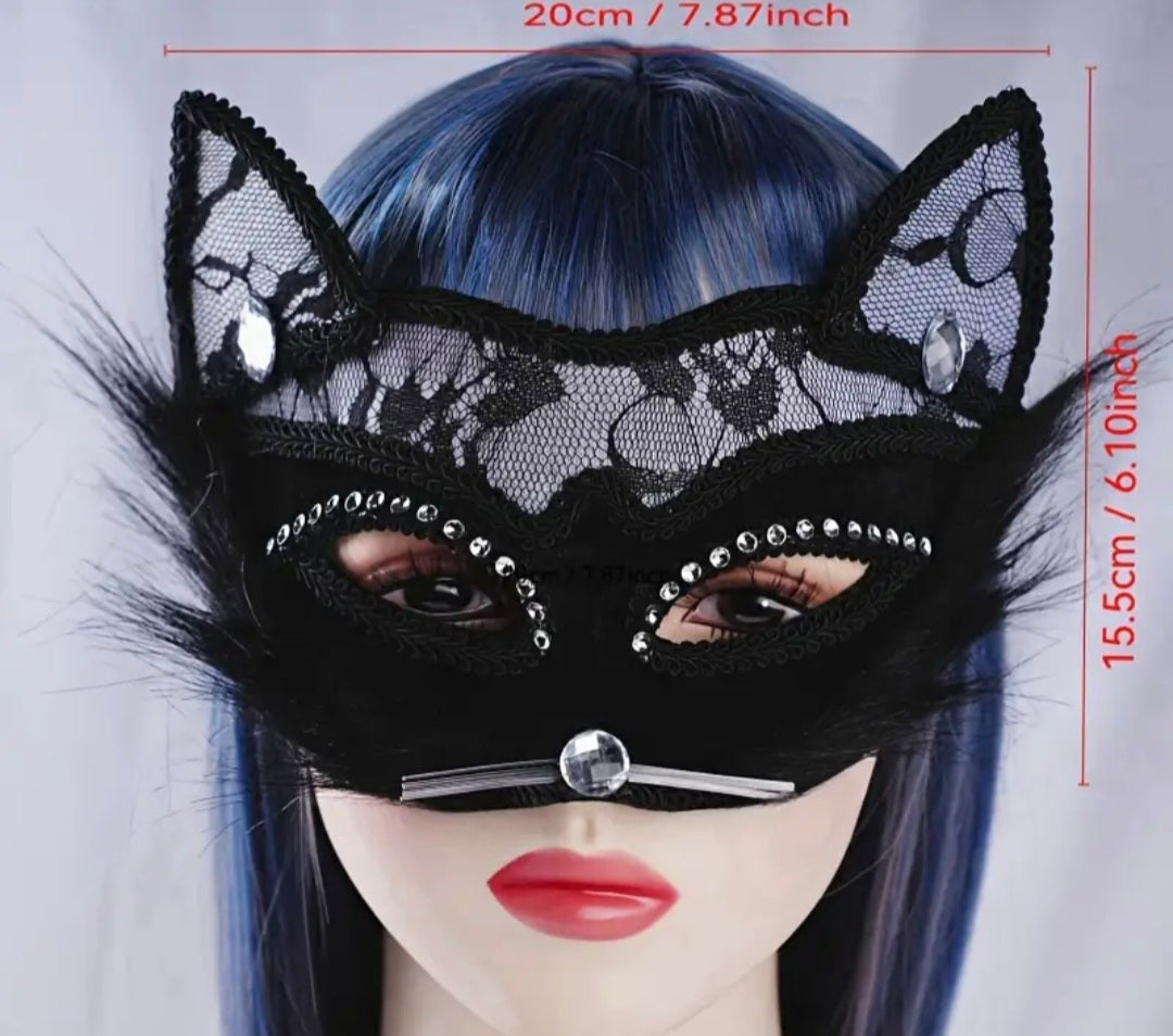 Dantelli Kedi Kulaklı Göz Maskesi – Siyah Fantazi Aksesuar