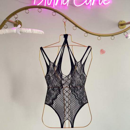 Midnight Spell – Çapraz Askılı Dantel & File Bodysuit