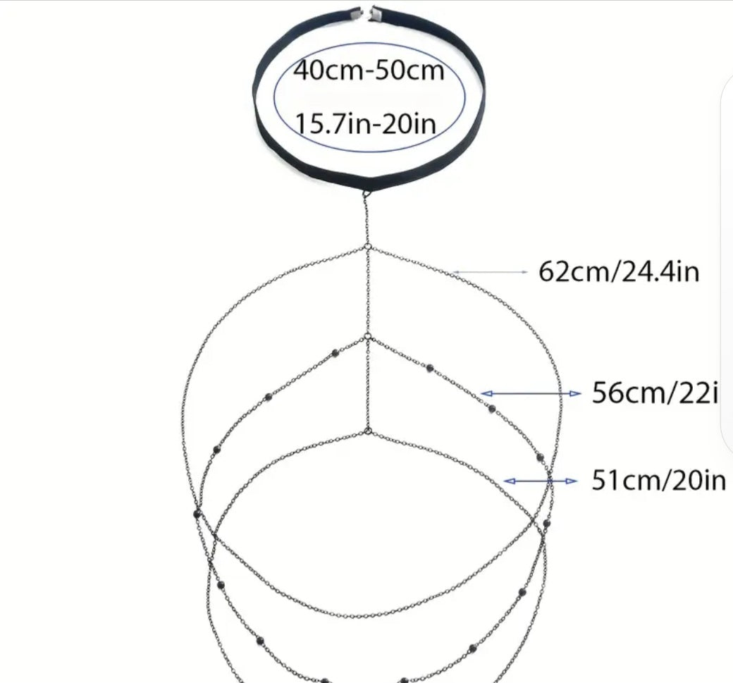 Kumaş & Yapı Siyah elastik bant + metal zincir 5 halkalı çok katmanlı tasarım Ayarlanabilir ölçü (40–70 cm çevre) Bakım Talimatı Kargo & İade DV-TC01 |